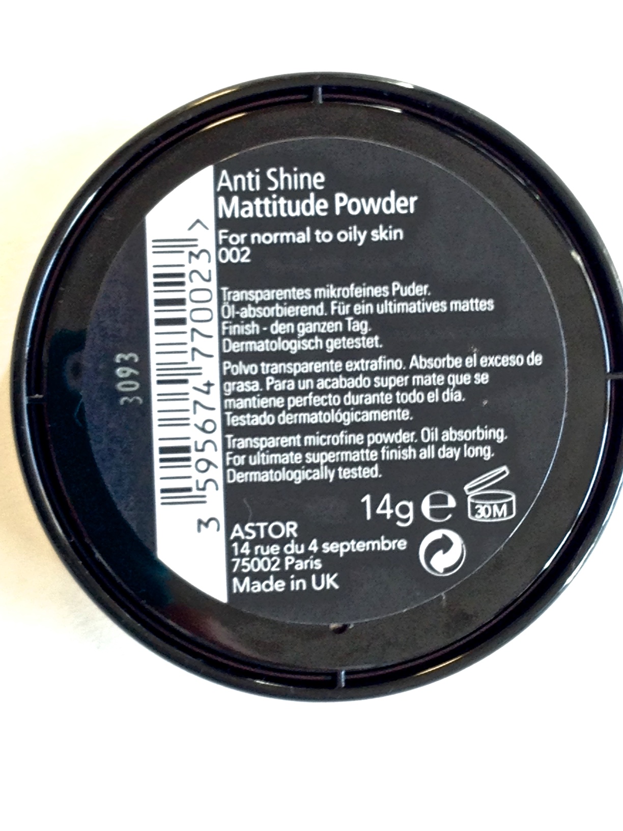 1. Astor Anti Shine Mattitude Powder - полупрозрачная компактная пудра, в оттенке 002. Страна-производитель Франция, но сделана в Великобритании. 14г.