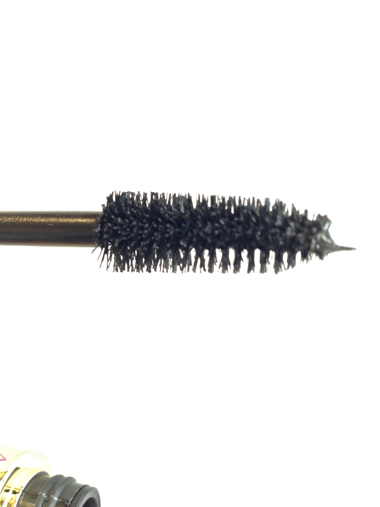 Кисточка достаточно большая, больше, чем у обычной туши. Сам продукт не жидкий, скорее кремовый, почти не склеивает ресницы, но драматичного объема тоже не дает. Такая тушь подойдет людям, у кого тушь обычно отпечатывается под или над глазами после нанесения, у которых длинные прямые ресницы, требующие "сухого" объема. Тушь плохо смывается водой, даже с очищающим средством. Требует дополнительной очистки с помощью средств на масляной основе.
