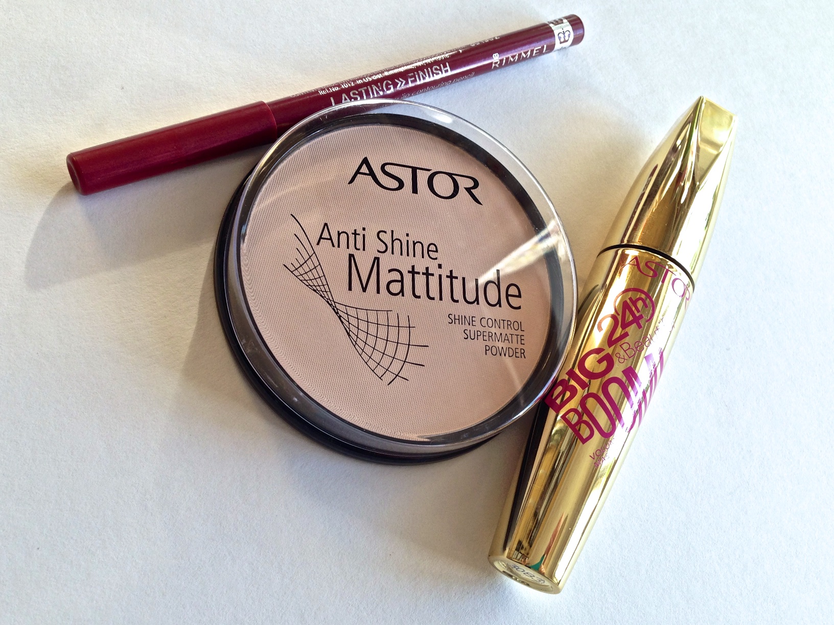 Итак, я расскажу вам о матирующей пудре Astor, туши для ресниц Astor и карандаше для губ Rimmel.